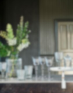 Wine glasses with etched stripes as a decorative pattern. Dishwasher-safe. The wine glasses are made of 50-60% recycled glass.