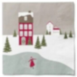 Wonderful napkins in paper, with motifs of houses in a winter landscape and a person on ice skates.