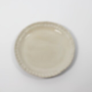 A beautiful and rustic handmade dinner plate with decorative edges. Perfect for setting the table.