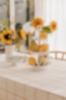 Lovely three floor cake stand with decorative edging. Perfect for afternoon tea! The stand has a handle at the top for easy moving.
