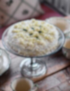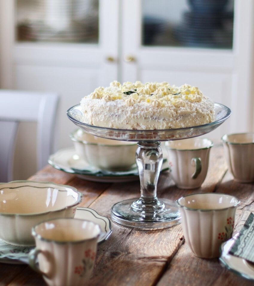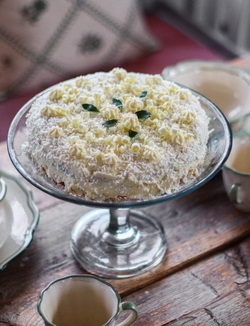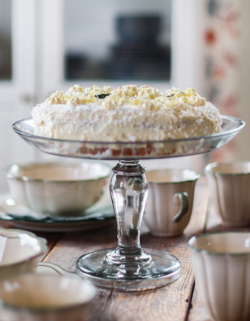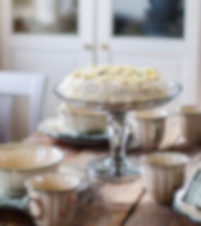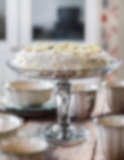 A beautiful and timeless wide glass platter on a stand. Perfect for serving everything from delicious cakes and pastries to highlighting decorative arrangements.