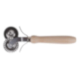 Double pastry wheel with one smooth and one wavy decorative cut. Cuts ravioli but also marzipan or cookie dough.