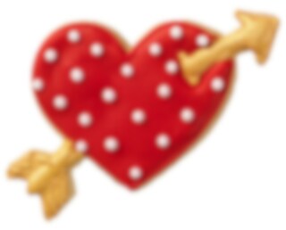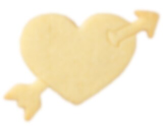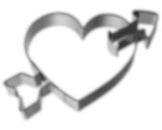 Cookie cutter in the form of heart with an arrow through it. Made of stainless steel.
