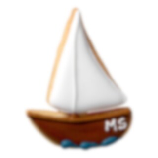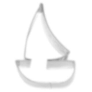 Cookie cutter in the form of a sailing boat in stainless steel.