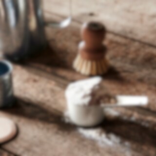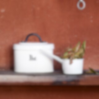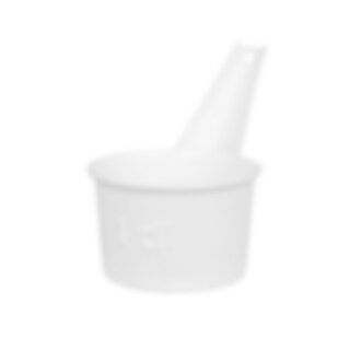 Measuring cup for 1 deciliter in white sheet metal. Machine wash is not recommended.