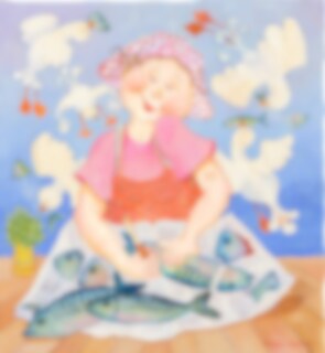 Dishcloth from Birgitta Lindeblad. The original motiv is painted by Birgitta Lindeblad in egg tempera, and has been printed onto theese dishclothes.