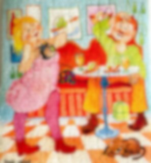 Dishcloth from Birgitta Lindeblad. The original motiv is painted by Birgitta Lindeblad in egg tempera, and has been printed onto theese dishclothes.