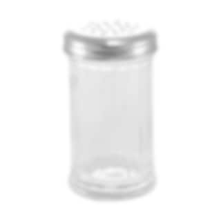 Classic sugar shaker made of glass in retro style with a metal lid.