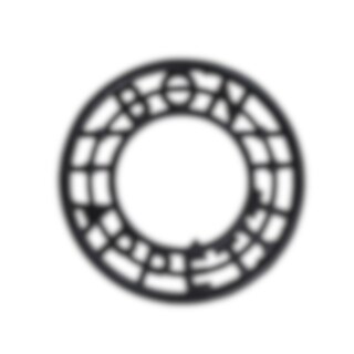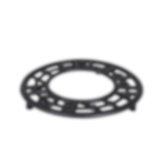 Round trivet in black-painted iron for pots and pans. Features a pattern with the words "Bon Appétit."