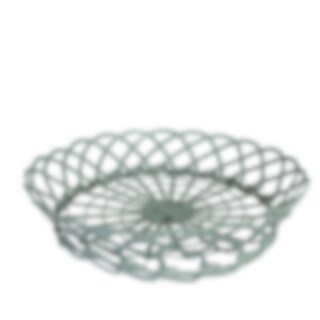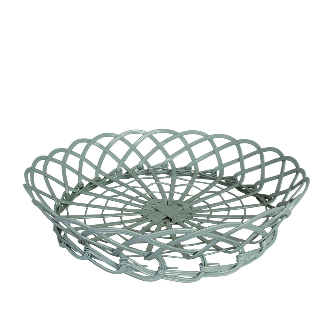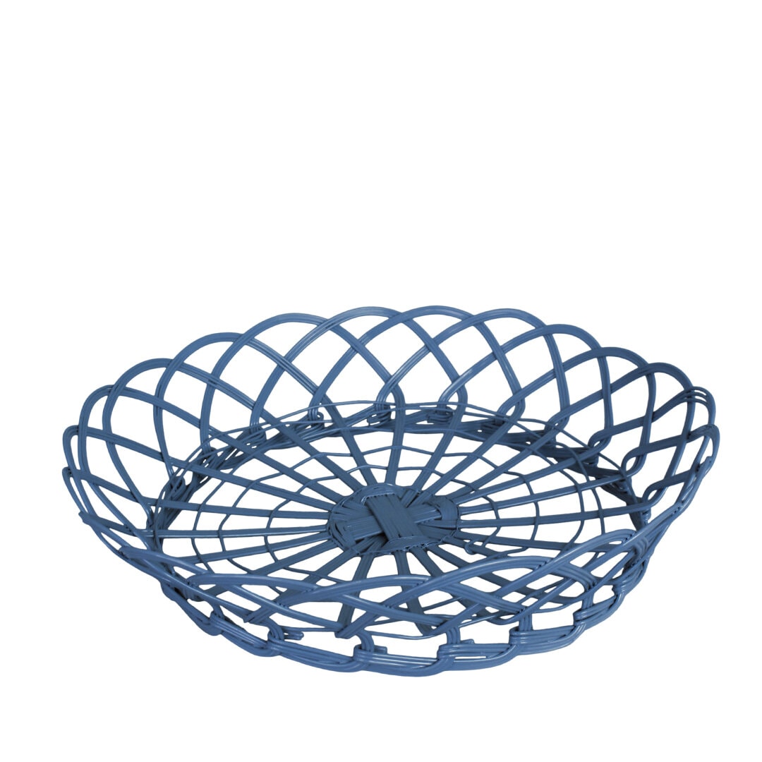 Charming round wire basket in a lovely blue hue, great for serving bread and cookies with your coffee, or organizing and storing items in the kitchen.