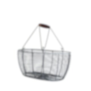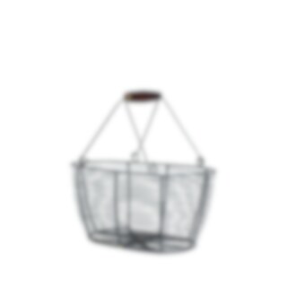 Small oval wire basket in zinc with wooden handles. Perfect storage in both kitchen and batroom. Removable handles.