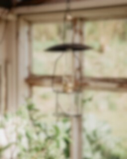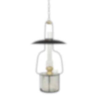Hanging stand in black lacquered metal with a small lamp shade and brass details. The hanging oil lamp holder fits all kerosene lamps from Strömshaga in the collection Straight Large. Length of chain: 93 cm.