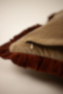 Lovely cushion cover in beige velvet with rust brown ruffle.