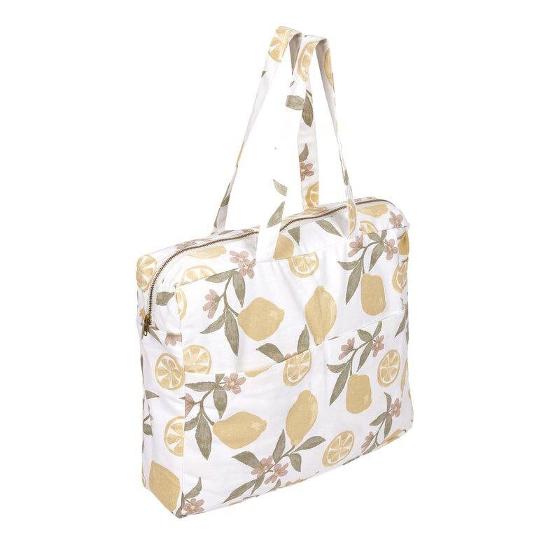 A cotton canvas bag featuring a charming summer pattern inspired by the Mediterranean. Stylish and practical, it’s perfect for beach days and everyday adventures alike.