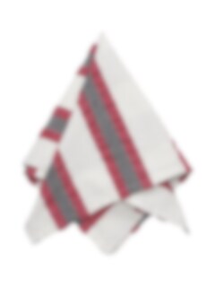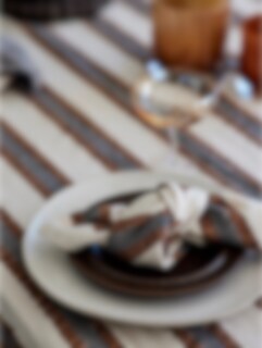 Decorative napkin with yarndyed striped design and seersucker effect.
