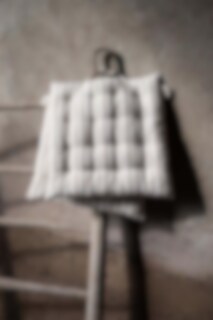 Soft seat pad in a lovely striped pattern and a peach colour tone. No more cold chairs around the kitchen table with these chair cushions.