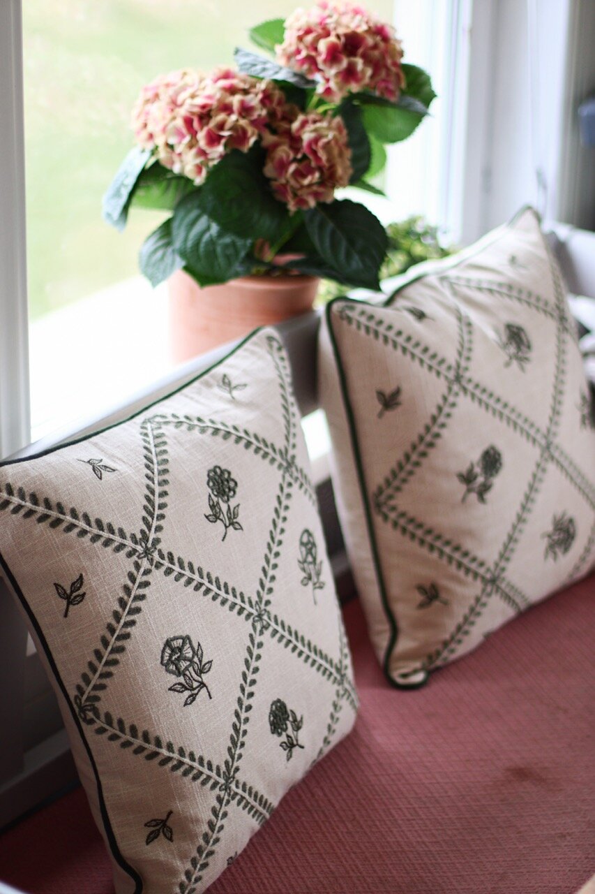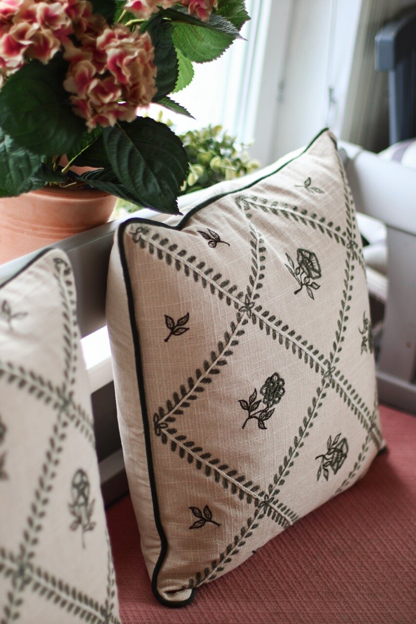 Cushion Cover Lovisa Embroidered Green/White