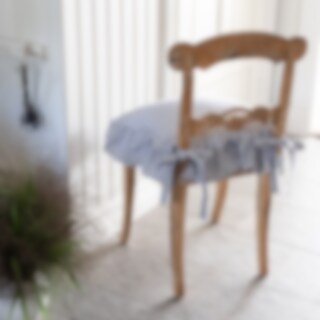 Create a romantic, charming feeling with this blue striped chair cover in linen coloured cotton. With tie and ruffles around the edge. Zipper on the back for a cushion. Recommended with inner cushion 50 x 50 cm, not included.