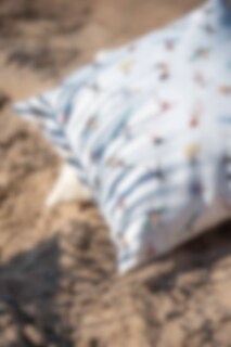 A lovely beach-themed cushion cover crafted from delicate velvet. Its playful, summery design evokes sunny days by the sea and brings a relaxed, cheerful atmosphere to any room.