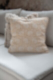 Lovely yellow cushion cover with a white flower pattern. An elegant and stylish addition to your sofa or bed.