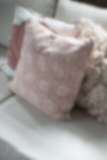 Lovely pink cushion cover with a white flower pattern. An elegant and stylish addition to your sofa or bed.