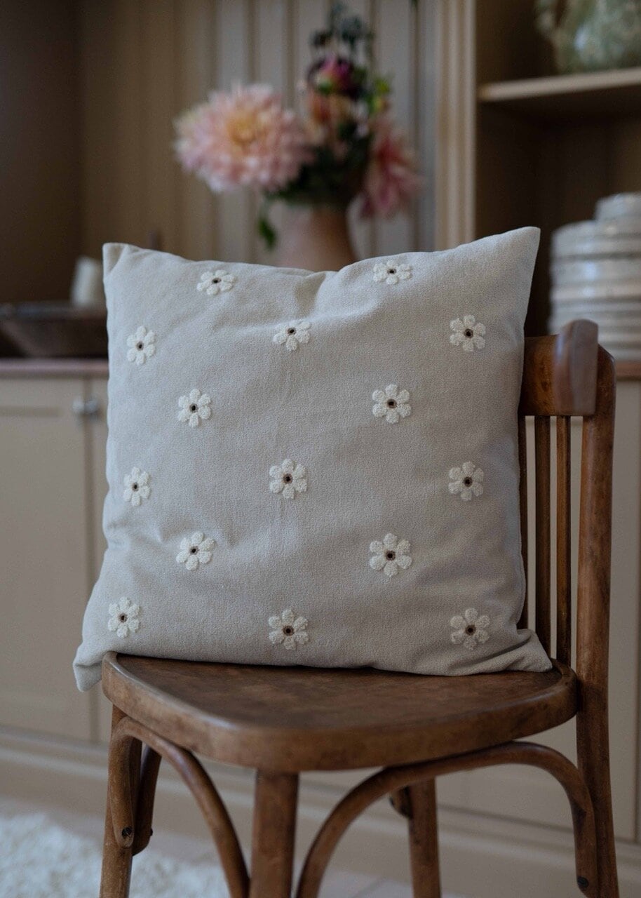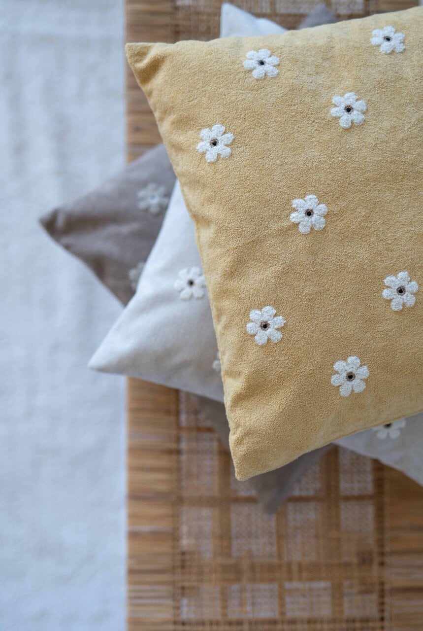 Tufted cushion cover with a soft, tactile texture and a fresh, summery design.