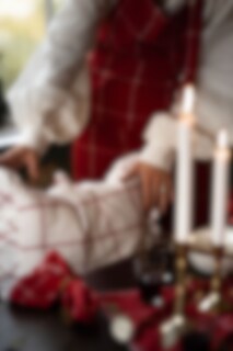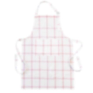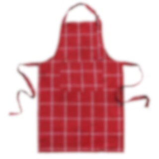 Apron in 100% organic cotton with red base color and white checkered pattern. Practical pocket at the front, tie at the waist and adjustable strap at the neck.