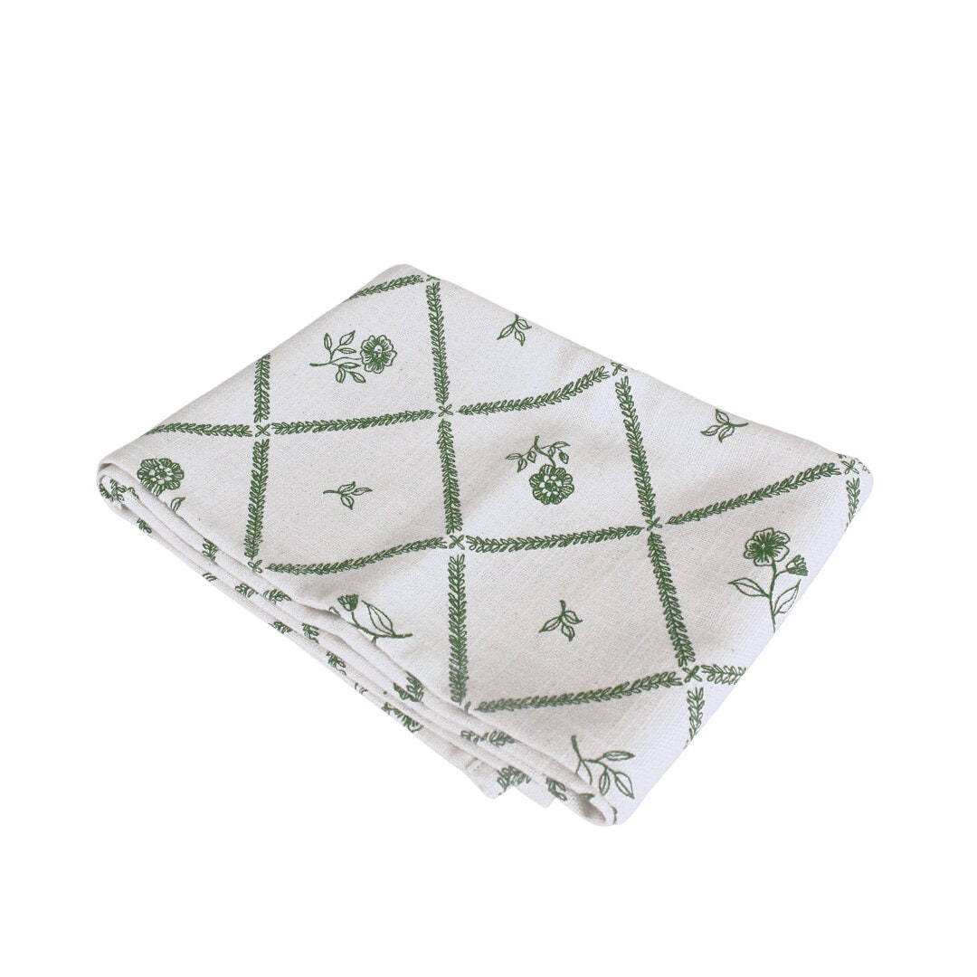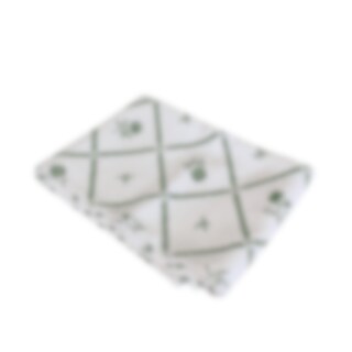 Kitchen towel in 100% organic cotton with a charming design of leaf squares and petite green flowers. Nice to combine with the other textile parts in the Lovisa series.