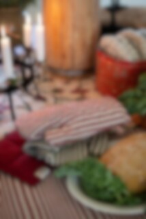 Decorative napkin with red and white stripes. Perfect for the Christmas table.