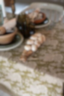 Cotton table cloth with a magnificent pattern and beautiful border along the long sides. A table cloth in soft colors that enhances the atmosphere of the room.