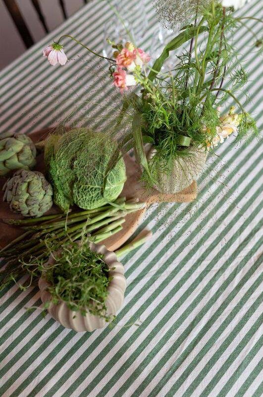 Lovely striped table cloth in a green colour. An elegant and stylish addition to your table setting.