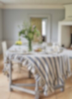 Tablecloth Made from 100% organic cotton with a classic wide-striped pattern and a beautiful frill. Very nice to match with other products in the same series.