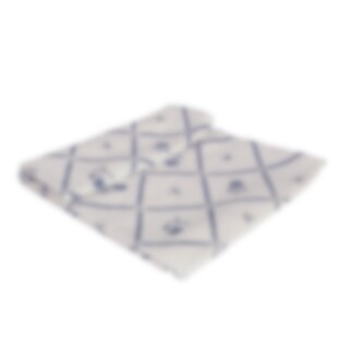 Table runner in 100% organic cotton with a charming design of leaf squares and petite blue flowers. Nice to combine with the other textile parts in the Lovisa series.