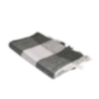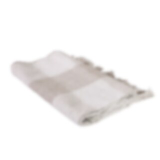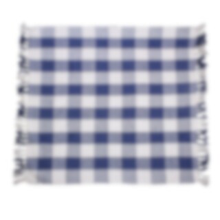 Plaid in soft cotton with a woven large checkered pattern in white and blue, with fringes. Perfect for the balcony, patio, or a picnic.