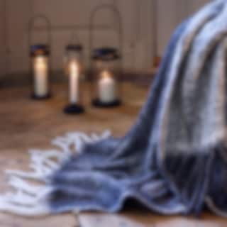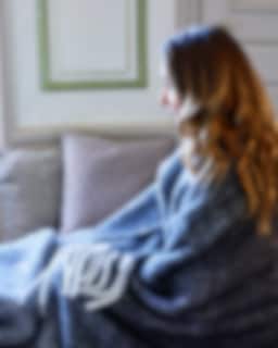 Soft and comfortable plaid in woven wool mix with fringes in white.