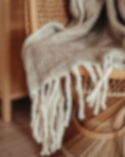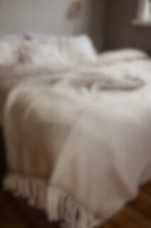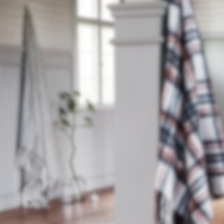 Soft and comfortable plaid in woven wool mix with fringes in white.